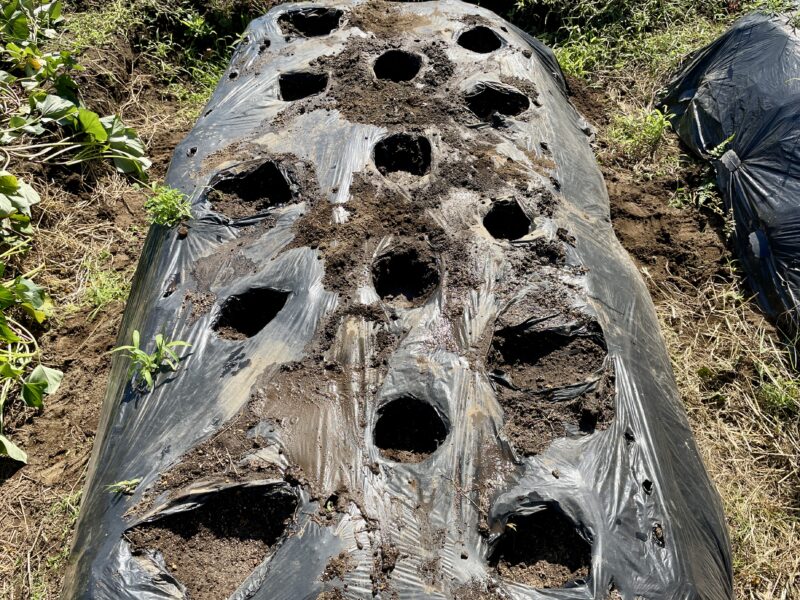 第1弾はこちらのウネの両端10ヶ所にまきました。真ん中は大根と相性のいいにんじんをまきました。