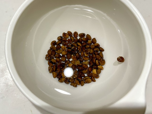 種袋に「種皮がかたく発芽しにくいので一昼夜水に漬けてまくとよい」と書いてあったので前日に水に漬けてからまきました。