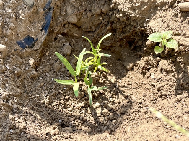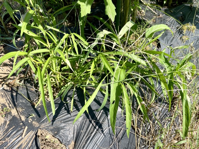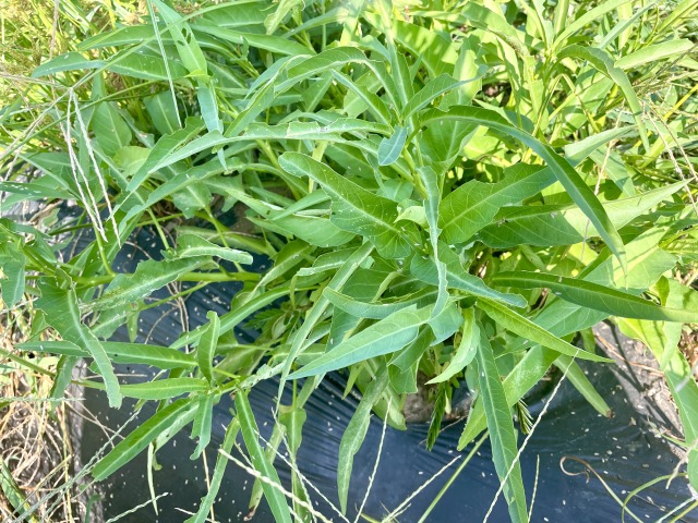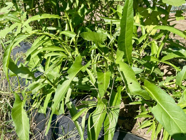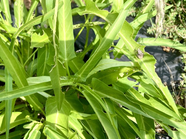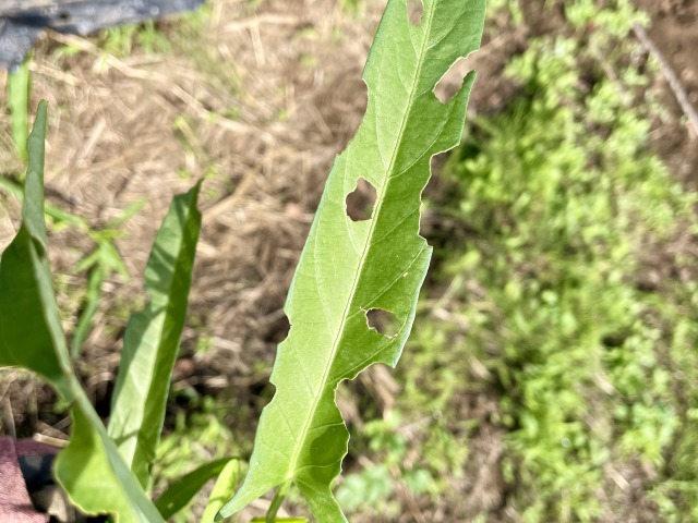 昨年はほとんど食害にあわなかったのに、今年は葉が穴だらけになってしまったことが気になりました。クウシンサイが日陰になるほど伸びていたわけではないですが、間から勢いよく生えてはいました。