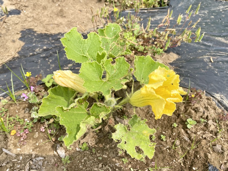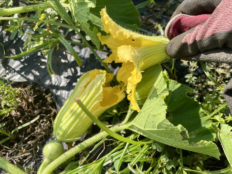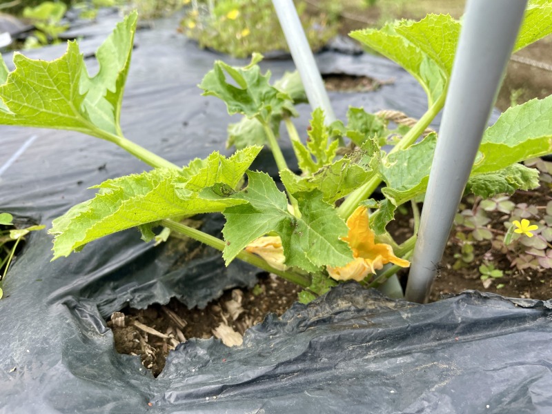 ・ズッキーニとカボチャは放任栽培で育てはじめたが実がつかず人工授粉したが失敗に終わった