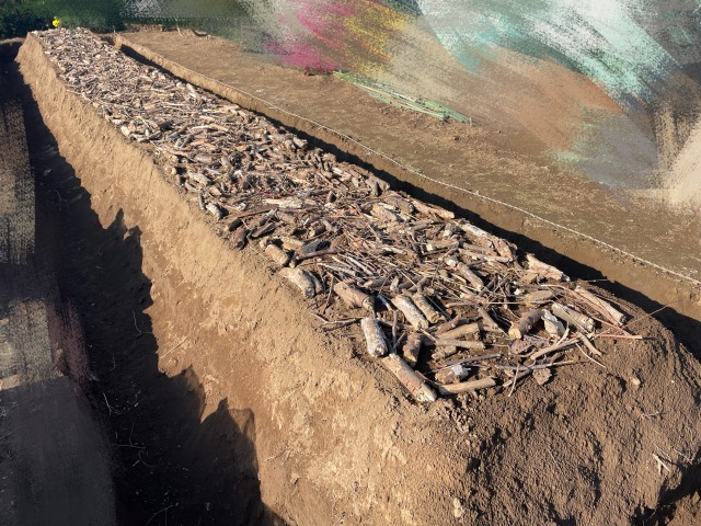 1.丸太や太い枝、タケなどを入れて畝を成形する