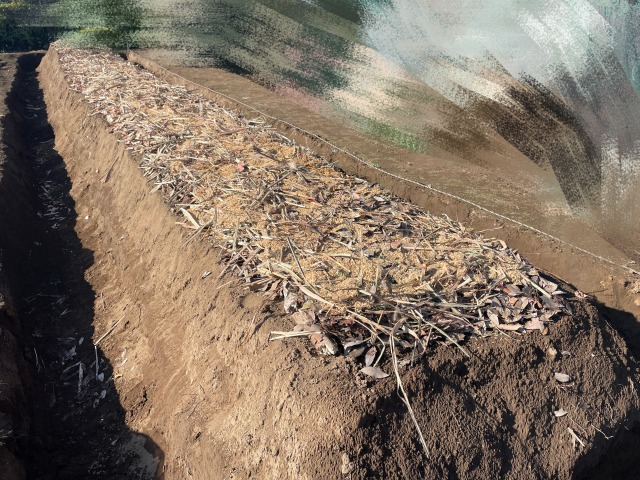 菌ちゃん農法ではこの畝づくりが時間と労力を費やす一番大変な作業ですが、一度つくればず〜っと利用できるので最初だけ気合いを入れて頑張ってください。