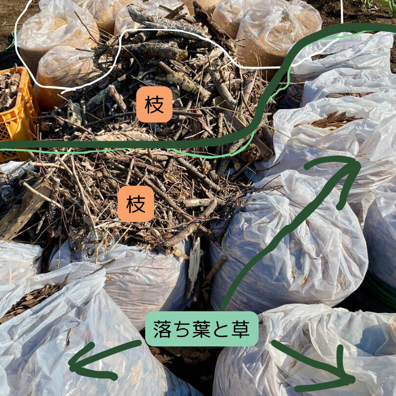 木の枝やチップを使用する場合は、【2024年最新版】菌ちゃん農法 畝づくりの改善点を写真付きで詳しく解説の記事をチェックしてください。