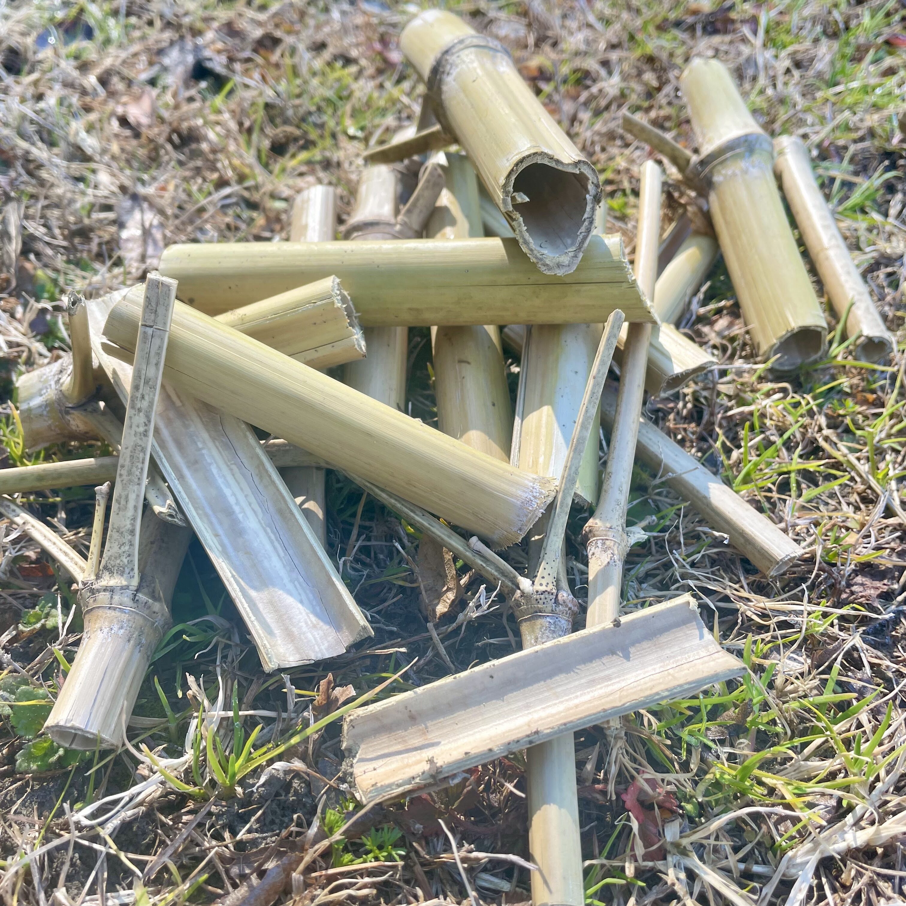 | 竹や笹 | 竹は1〜10cmの長さにする。 紫外線に当てたり踏んだりしていると自然と割れる。 |