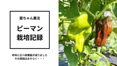 菌ちゃん農法 【菌ちゃん農法2年目】ピーマンの栽培記録・収穫は少なめでした しばふ菌ちゃん農法2年目となるピーマン栽培でしたが、昨年に比べると収穫量は少なめでした。また実も小さめで残念な結果でしたが栽培記録が参考になれば幸いです。品種ニ... 2025.12.05 菌ちゃん農法